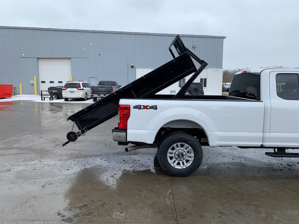 a capacity of 2500 pounds. It's unique because the dump bed can be lowered flat on the